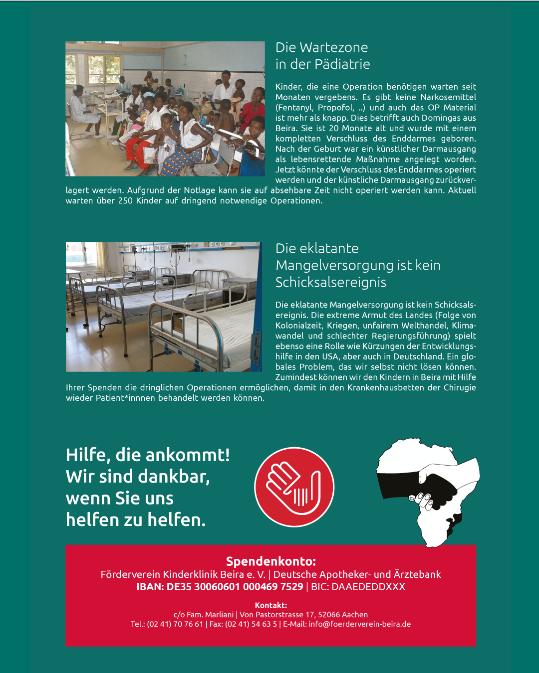 Wir sind ein ehrenamtlich arbeitender Verein und unterstützen die Kinderklinik des Zentralhospitals in Beira / Mosambik.